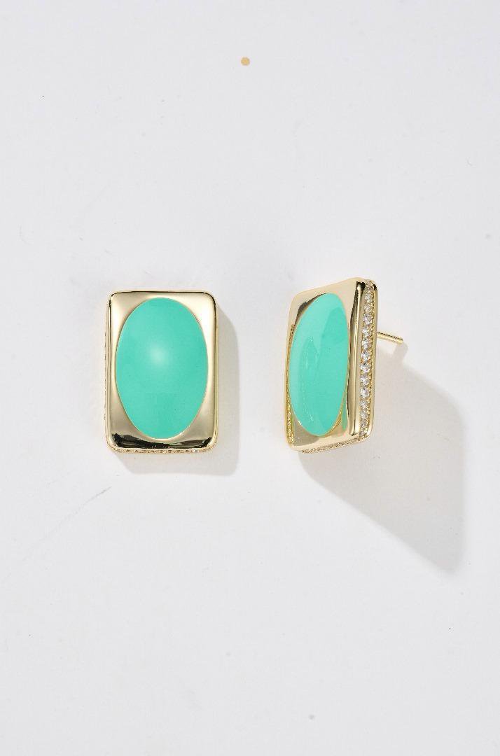 boucle d'oreille turque ornée d'un diamant latéral et d'un émail ovale